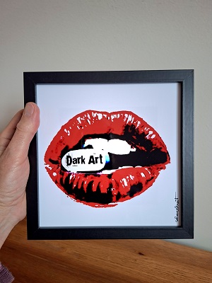 Dark Art . Glossy photo print, hand-signed, framed, black wooden frame for hanging or display ( 22 cm x 22 cm x 3 cm or 8,66 inches x 8,66 inches x 1,18 inches ) .
